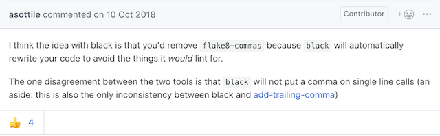 Black自动格式化后,发现换行后只有一行的,末尾并不会加”,”
